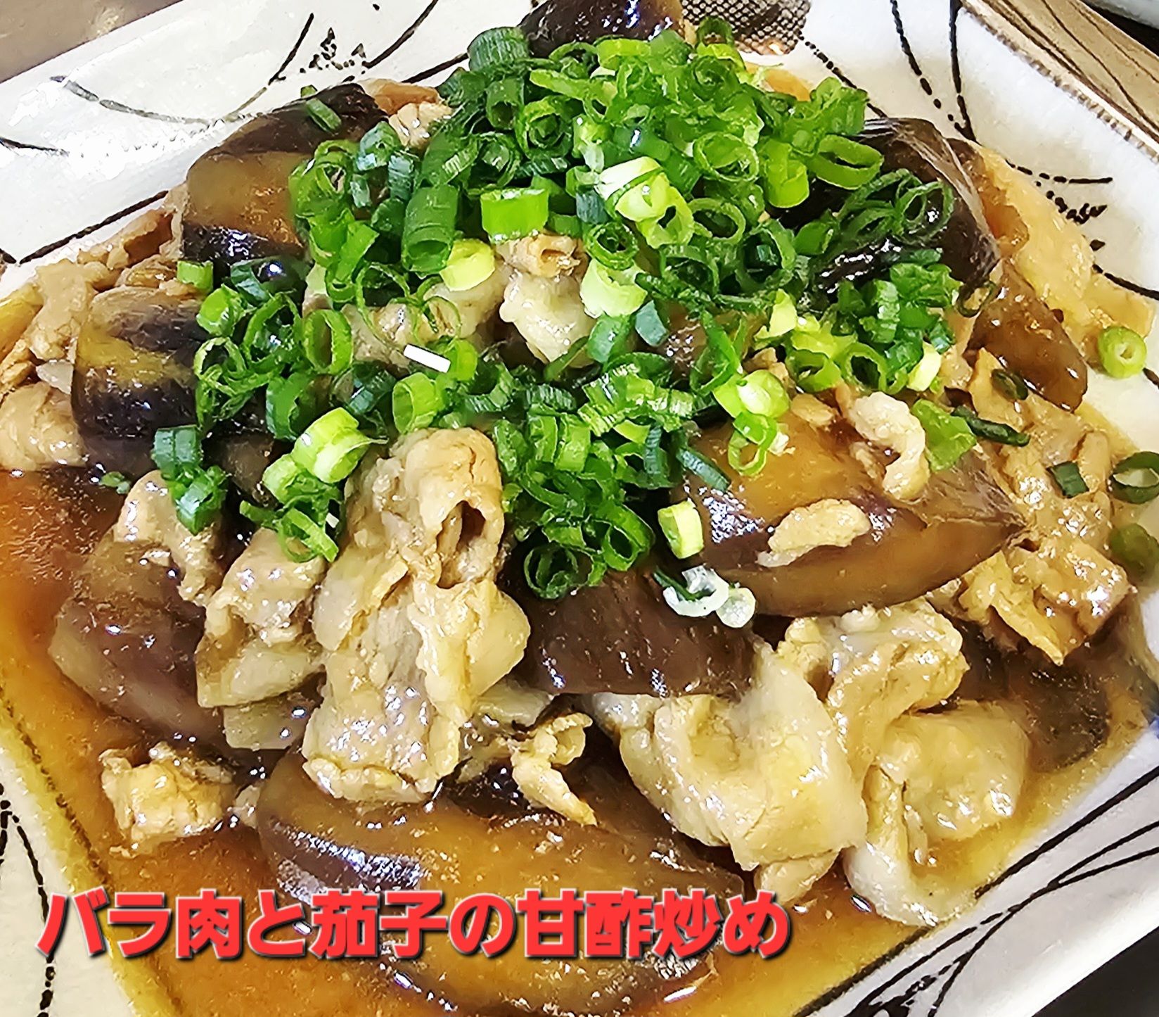 さて、今朝のサムネイル画像は、昨日の夕飯〖豚バラ肉と茄子の甘酢炒め〗です。