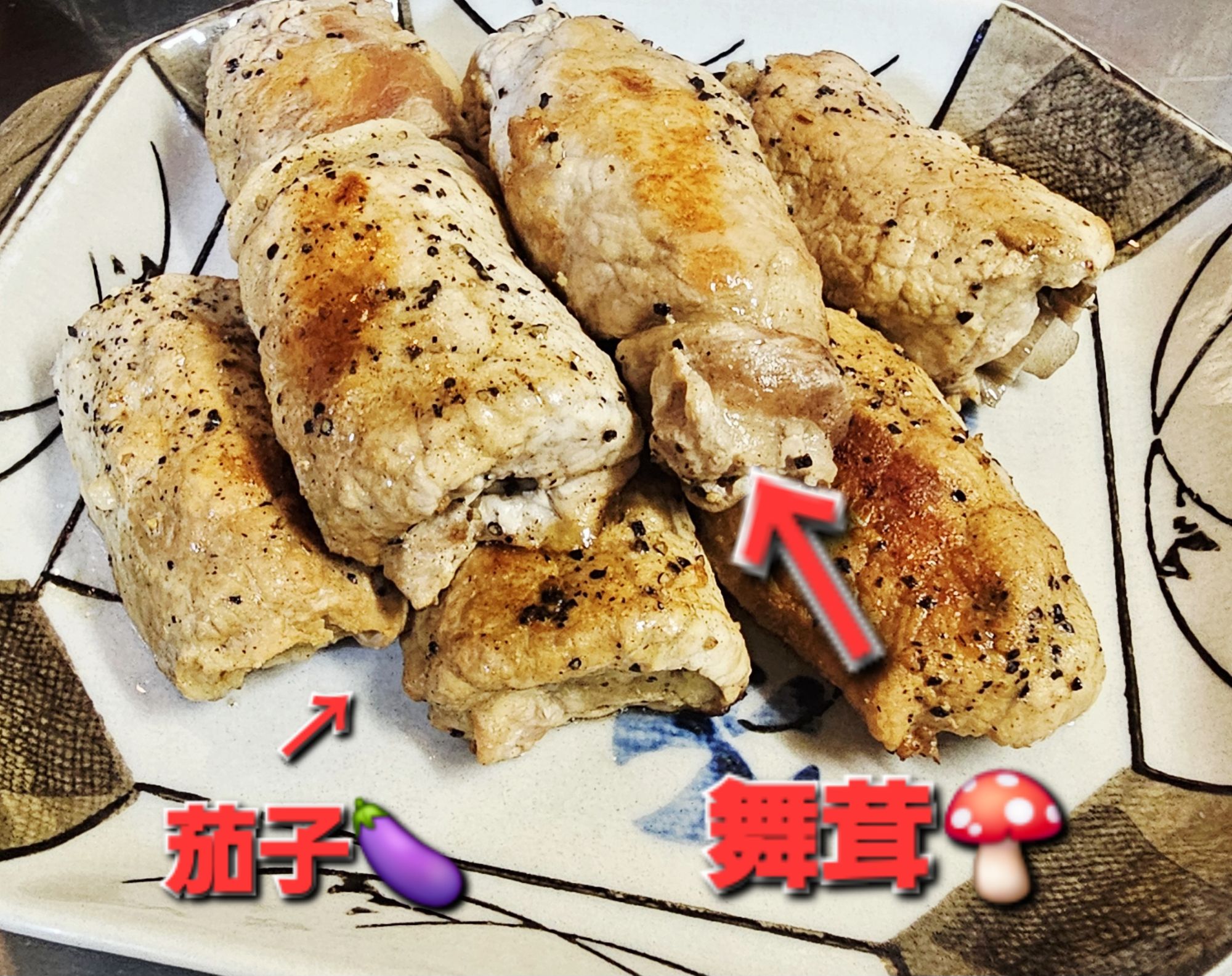 今朝のサムネイル画像は、昨日の夕飯〖舞茸と茄子の肉巻き〗です♬
