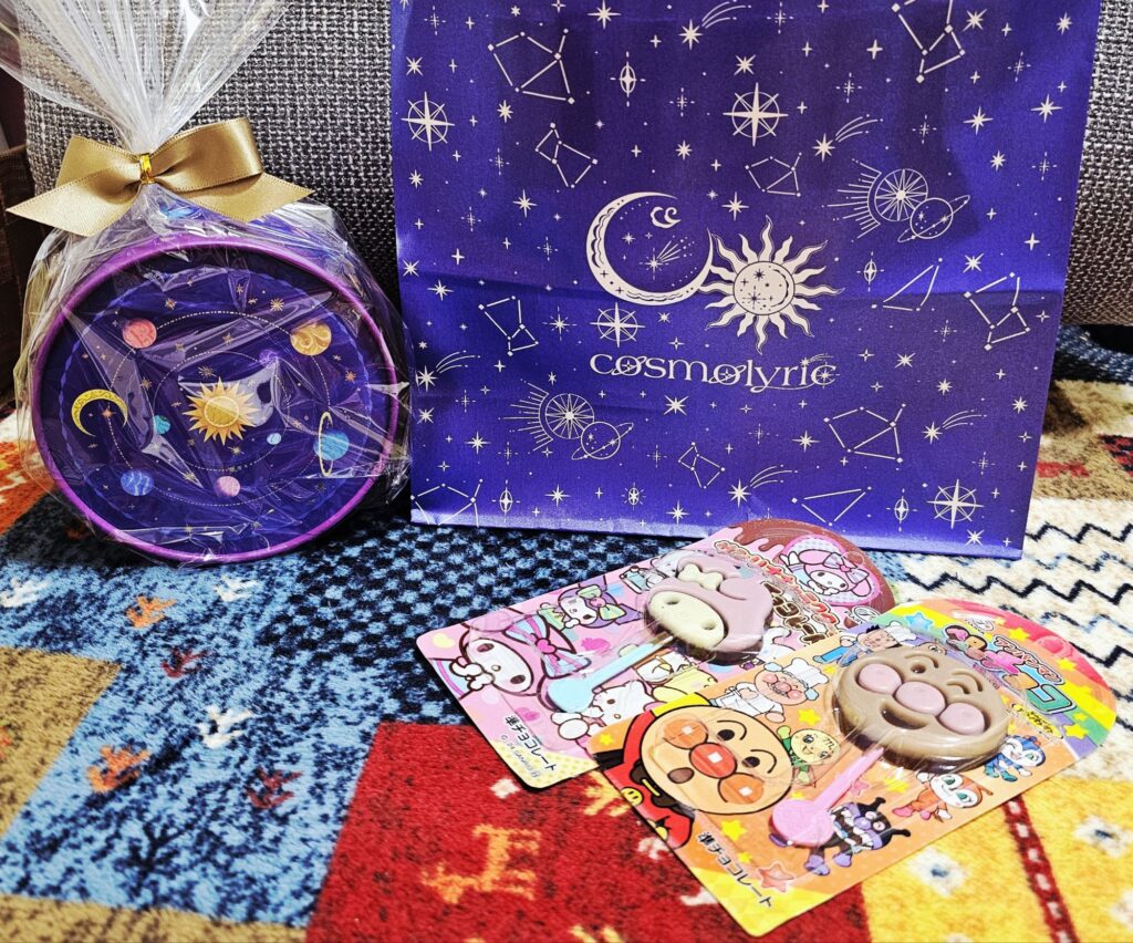 入れ物が可愛いお菓子の詰め合わせと、懐かしいな~なキャラクターのチョコ。 私が子供の頃は、何のキャラクターだったかな?