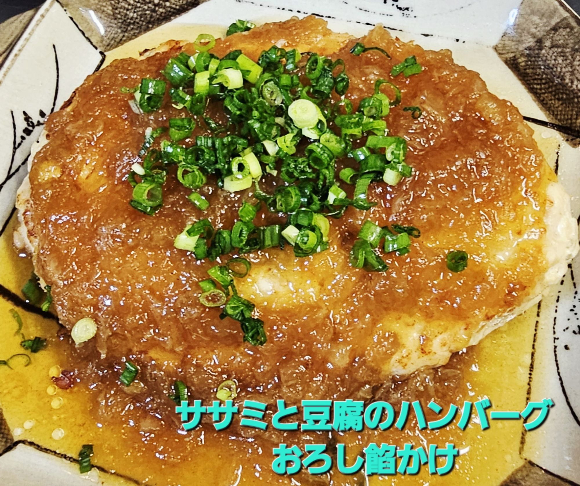 今朝のサムネイル画像、〖ササミと豆腐のハンバーグおろし餡かけ〗