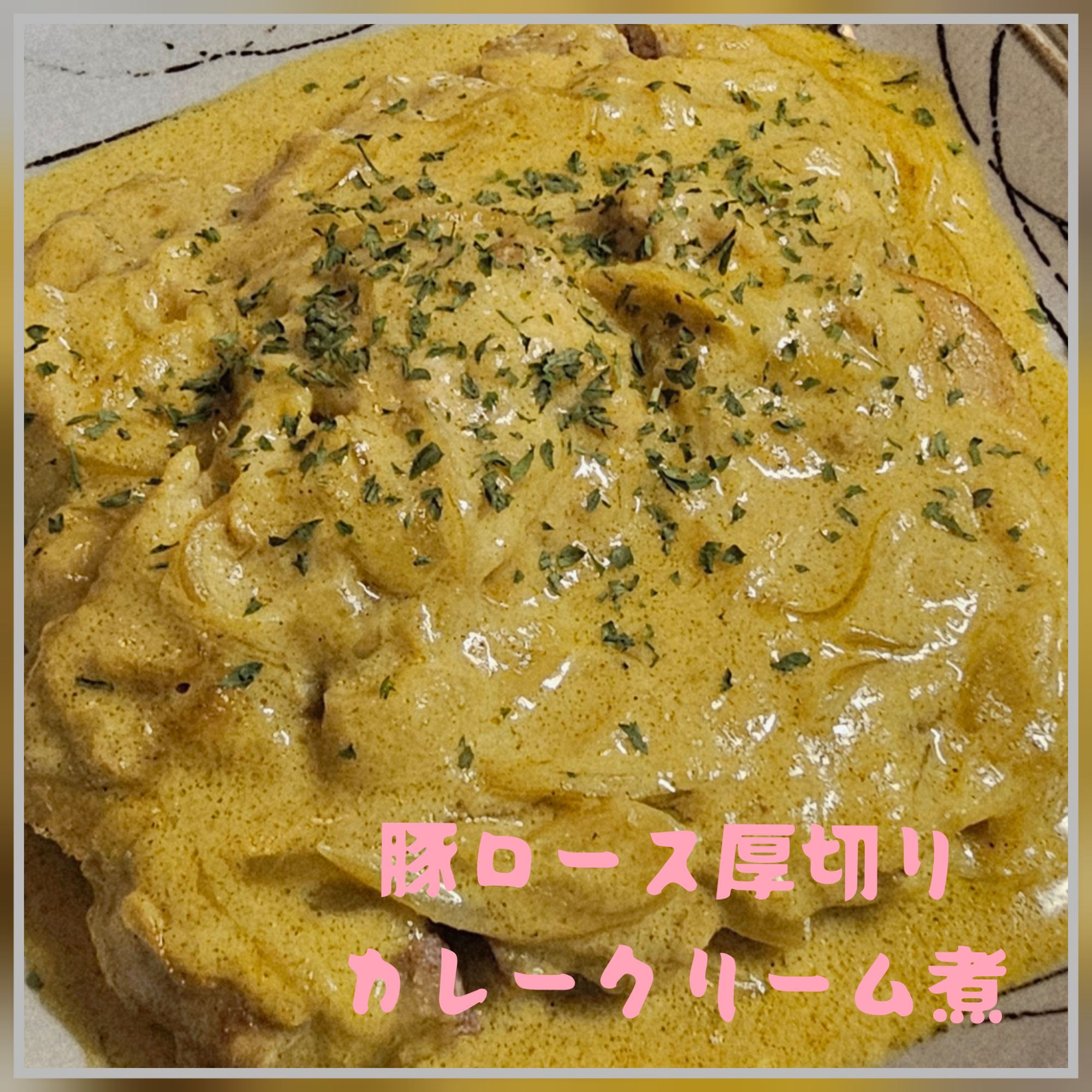 今朝のサムネイル画像は、〖豚ロース厚切りカレークリーム煮〗。昨日の夕飯です(^^)