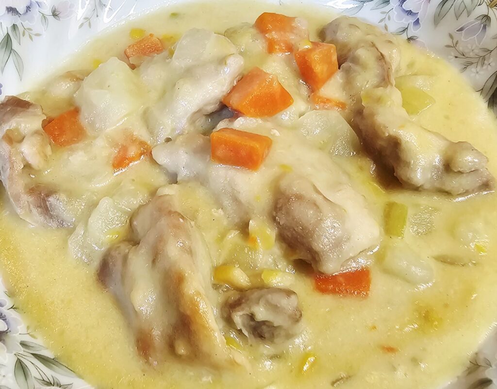 夕べは、〖鶏もも肉のコーンクリーム煮〗でした。3日連続鶏肉は珍しいかも( ˆ﹀ˆ٥)