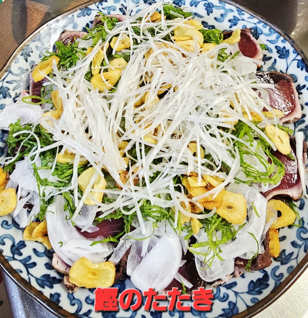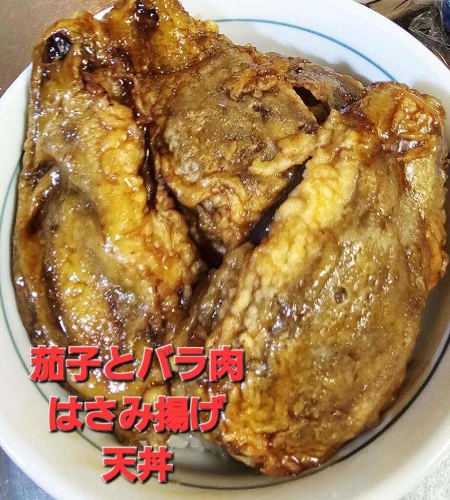 今日は、予定通り〖茄子のバラ肉はさみ揚げ天丼〗&〖鰹のたたき〗。