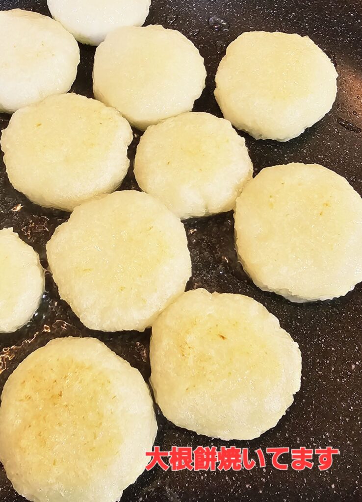 大根餅って、初めて作りましたが、大根をすりおろして、片栗粉を加えて焼くだけ。とても簡単なのに、とても美味しかったです♬